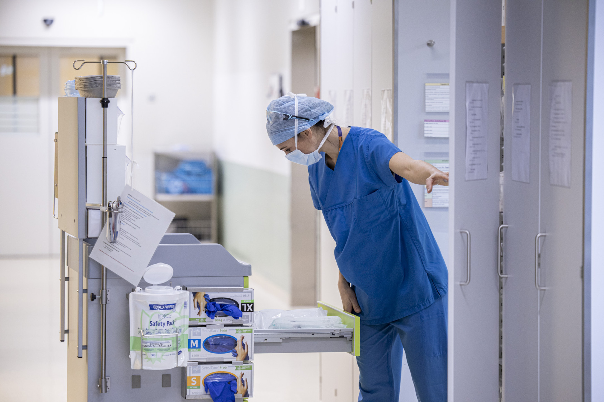 10. Neben den geplanten Anästhesien gehören auch das Aufräumen, Reinigen und Auffüllen des Materials und der Säle zu meinen Aufgaben. Hinzu kommt das Bereitstellen des Anästhesiematerials