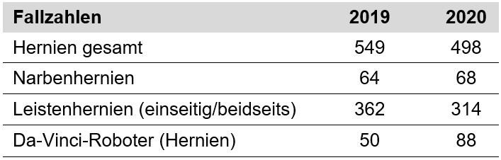 Das Behandlungsspektrum umfasst dabei nicht nur Leisten-, Femoral-, epigastrische, Nabel-, Narben- und Zwerchfellhernien, sondern auch komplexe Rekonstruktionen grosser Bauchdeckendefekte. Unser Team steht für hohe Fachkompetenz und Qualität. Die Abklärung und Behandlung von Schmerzzuständen an Leiste und Bauchdecke vor und nach einer Operation stellt eine besondere Expertise des Hernienexperten Dr. med. Dietmar Eucker, Leitender Arzt dar. Dr. med. Sebastian Lamm, Leitender Arzt verfügt in der Region über die grösste Expertise bei der Da-Vinci-Roboterversorgung von Leisten- und Narbenhernien.