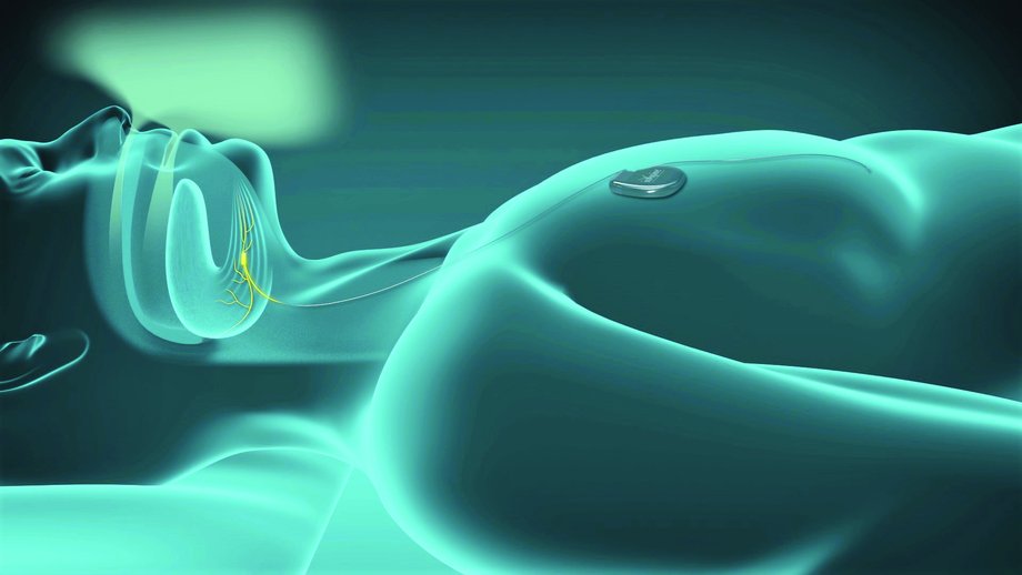 Die Inspire Therapie arbeitet im Einklang mit dem natürlichen Atemrhythmus. Dieser wird während des Schlafs mittels eines Sensors kontinuierlich gemessen. Durch eine sanfte Stimulation des Zungennervs werden synchron mit der Einatmung wichtige Atemwegsmuskeln stimuliert und so der Atemweg offengehalten. Das System wird vom Patienten über eine kleine Fernbedienung selbst gesteuert. Per Knopfdruck schalten sie Inspire einfach vor dem Zubettgehen ein – und nach dem Erwachen wieder aus.